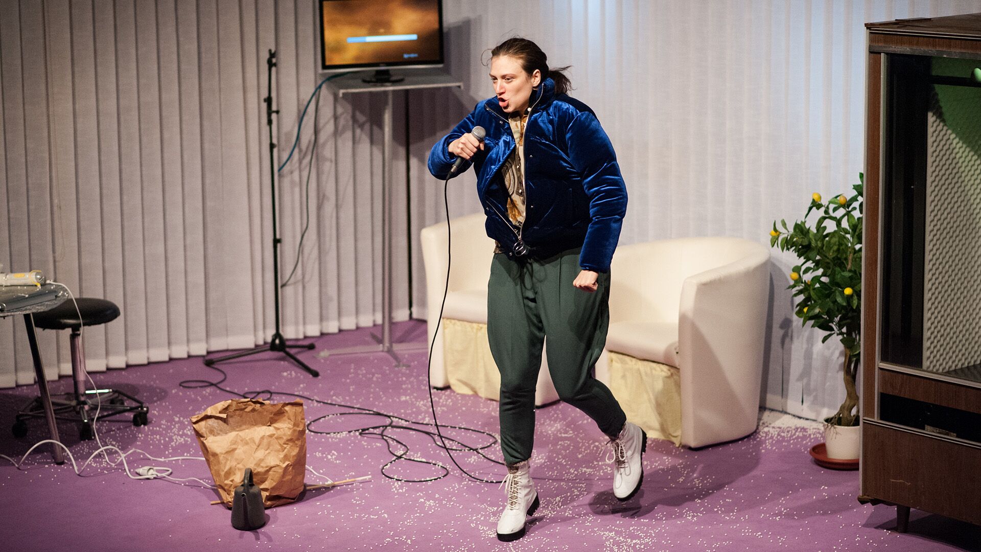 In the autobiographical performance FALLSUCHT, Lara Scherpinski tells of an illness surrounded by the aura of mys-tery: epilepsy. Sacred, prophetic, sinful, unruly, possessed by demons. The absolute loss of control in thinking, feeling and experiencing. A primal human fear, materialized in a disease that threatens peace. It is this uncontrollable that our society seeks to cope with again and again by pushing it away, putting it into DIN fits or even disqualifying it as a way of life.